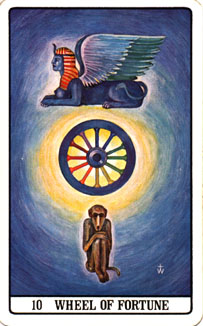 La carta indica cambiamento e capacità di vivere con prudenza il cambiamento stesso. Il simbolo ricorda che pochi stati o modi di vita sono permanenti e irreversibili: presto o tardi un capovolgimento della fortuna è seguito da una caduta o da una salita. L'arcano indica una fase di successo dovuto a favori o ad occasioni colte al volo con presenza di spirito, sveltezza, iniziativa. Annuncia la possibilità di scoperte fortuite che conducono l'individuo a posizioni brillanti anche se instabili. Successo quindi conseguito al di fuori di meriti personali, vantaggi tratti da casi fortunati. Si allude anche alla possibilità di acuire l'intuito negli affari. Se l'arcano compare in posizione negativa, indica momento sfortunato, perdita al gioco, speculazioni sbagliate. Simboleggia rischi inutili e rovesci di fortuna, eccessiva fiducia nell'azzardo e soprattutto momentanea incapacità di distinguere il bene dal male. Siamo entrati nel regno della sovranità e del potere, che possiamo ottenere giocando bene le nostre carte, proprio come potrebbe accadere davanti a una roulette. Il momento si presenta estremamente favorevole e dobbiamo cogliere al volo la fortuna offertaci, afferrarla senza tentennamenti e senza paura di correre rischi, che, tra l'altro, sono praticamente inesistenti se questa carta ci è apparsa al primo colpo. Se l'abbiamo ottenuta dopo vari tentativi, vale comunque la pena di tentare la sorte perché è dimostrato che la costanza premia. Il consultante con l'apparire di questa carta non avrà bisogno di ricorrere alla magia per ottenere il risultato sperato, perché indica che sarà aiutato dalla dea bendata: la fortuna.