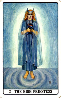 Simboleggia la femminilità ricettiva, l'anima delle cose la quintessenza del pensiero. Sapienza segreta e senso pratico. Religiosità e filosofia. Pedagogia e psicanalisi; introspezio. Carta magica, medianica.