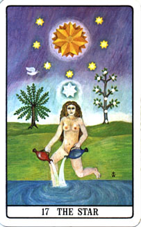 L'interpretazione dell'arcano 17 è innanzitutto quella della rinascita e di un nuovo inizio. Le stelle segnalano l'arrivo di Venere che risveglia Adone, il giovane amante ferito a morte, mentre il laghetto ricorda il bagno nell'acqua della vita che dona giovinezza perenne. Annuncia una prossima liberazione della terribile morsa della tristezza. Allude anche a un incontro d'amore, alla possibilità di raggiungere il proprio ideale erotico e un'unione felice. In caso negativo la carta può significare una persona dedita ai piaceri carnali, una sorta di dongiovanni (maschile o femminile) che può nuocere all'interrogante. La speranza e la fede sono le peculiarità più incisive di questa carta, l'amore per il bello e il senso estetico delle cose si lega al desiderio umano di migliorare la propria esistenza. La carta è di buon augurio e conduce verso la realizzazione. Le prospettive sono brillanti e possono persino superare le aspirazioni, infatti lo spirito innovatore della carta permette di andare oltre le proprie esigenze. Le stelle, nel senso degli astri, sono amiche di questa carta e influenzano benevolmente il cammino del consultante, per cui anche un'azione magica può ottenere risultati brillanti.